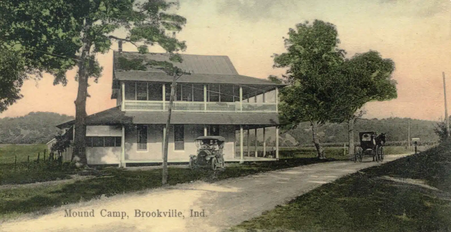 It is unclear when and why Samoniel and his partners closed the Mound Camp, but it was opened as a chicken dinner place in May 1921 by Dora Dawdy and Emmett Prifogle. The dance hall was built in the 1920s,   sometime between 1921 and 1928. At some point in time, small tourist cabins were also constructed on site, which makes it one of Franklin County’s earliest “motels,” a concept that developed nationally with the popularization of automobiles, the new notion of weekend get-a-ways, and most importantly, with the onset of the once primitive auto trails being converted into standardized, paved, state roads and state highways.